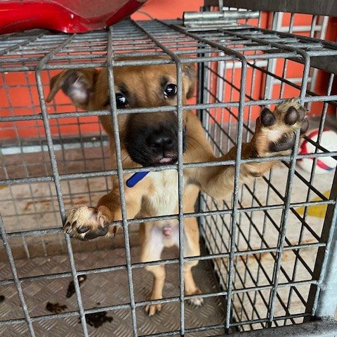 Je m’appelle Sparky ✨. J’ai été retrouvé enfermé dans un sac de croquettes, hurlant de peur et de douleur pendant 2 jours entiers 😭. Mon propriétaire sous tutelle avait quitté son domicile en m’abandonnant… Heureusement, les pompiers ont entendu mes appels et m’ont sauvé 🙏. Mais si je ne trouve pas rapidement une famille d’accueil, je risque la fourrière. Là-bas, un chiot comme moi n’a aucune chance : la parvovirose et l’euthanasie m’attendent 💔.