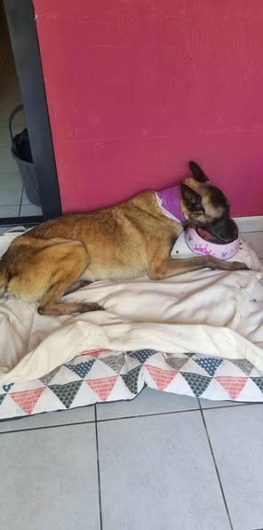 💗 Très doux et coopératif malgré ses douleurs 🛏️ Se laisse soigner sans difficulté 😴 Encore très faible, ne peut pas marcher seul 💊 Besoin de soins quotidiens et de présence constante