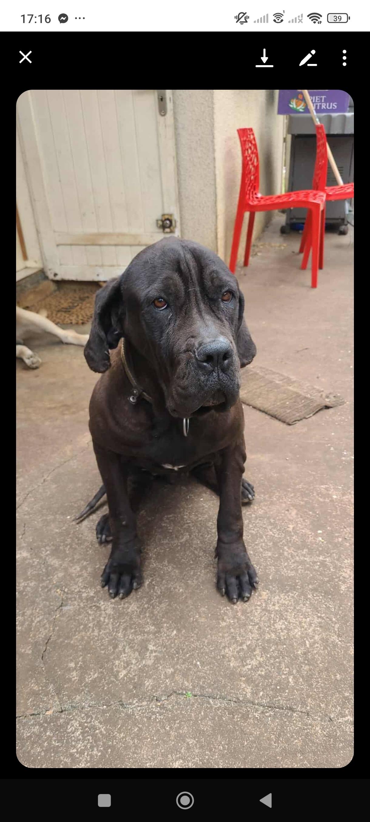 ✅ Très affectueuse et discrète ✅ Douce et calme ✅ Ok humains, ok enfants ✅ Peut être sélective avec les congénères, mais s'entend bien avec les grands chiens🚨 Pas ok poules 🚨 Pas ok chats 💔 Besoin d’une famille patiente, douce et rassurante 🏡 Elle mérite un foyer Pour la vie 🐾 Patsi, c’est une chienne cane corso d’une douceur incroyable. Malgré son passé, elle a gardé une tendresse bouleversante Elle accepte les caresses, et très douce et rêve d’un foyer rien qu’à elle