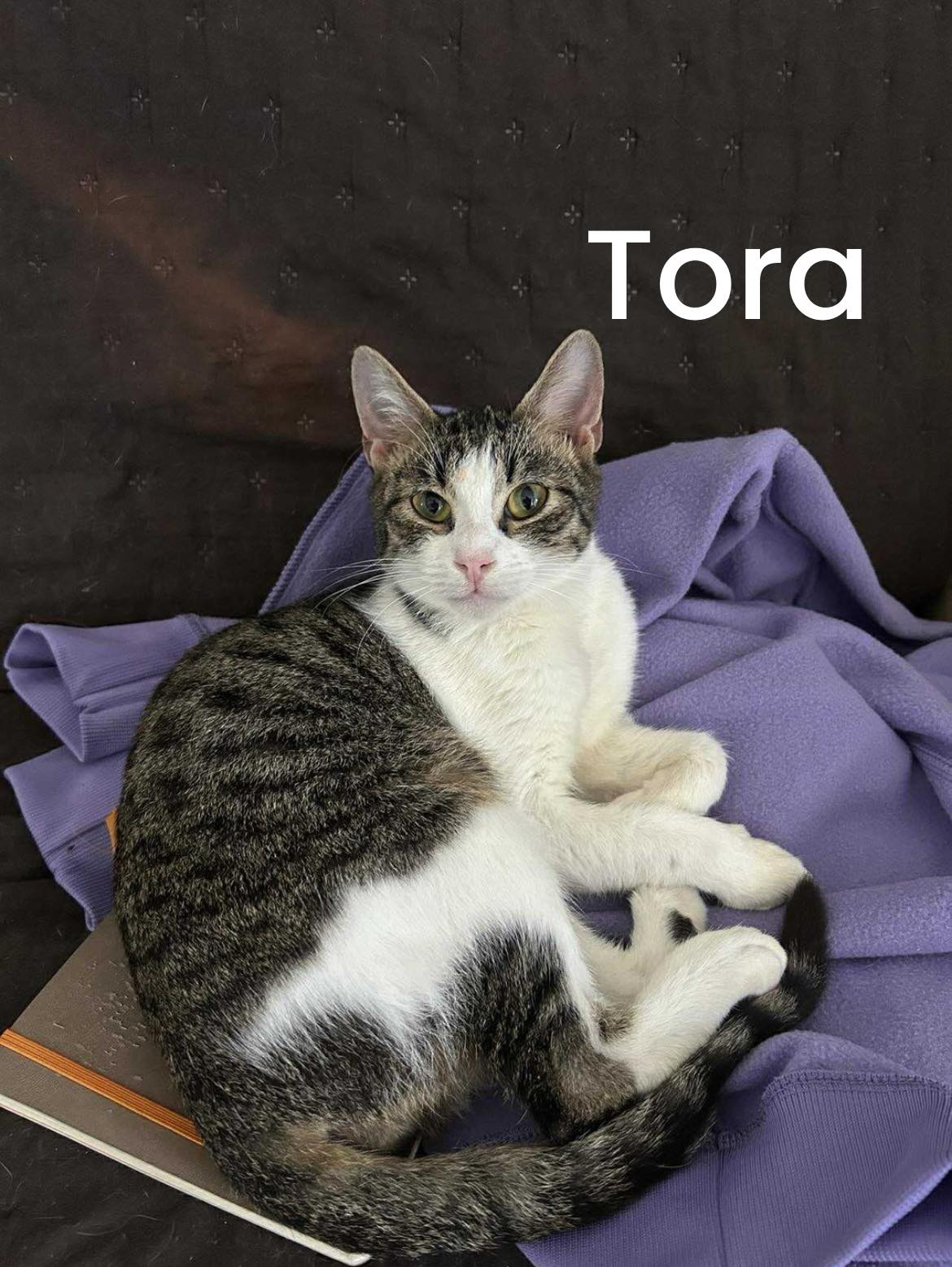 Petit mâle tigré d'1 an, je suis Tora. Malgré mon passé difficile dans un contexte de maltraitance, je suis un chat calme qui apprécie les caresses. 🥰