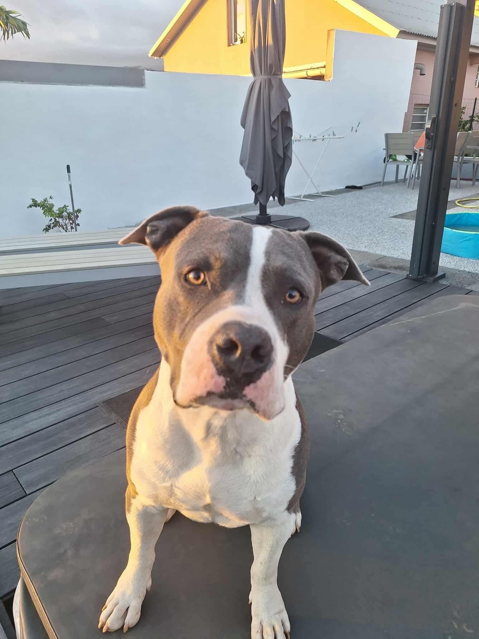 Coucou, je me présente, je suis YWA un beau croisé Bully qui a été sauvé à Saint-Joseph après avoir été gravement blessé et sabré… Aujourd’hui remis sur pattes, je suis prêt à trouver un foyer stable et aimant ! 💛